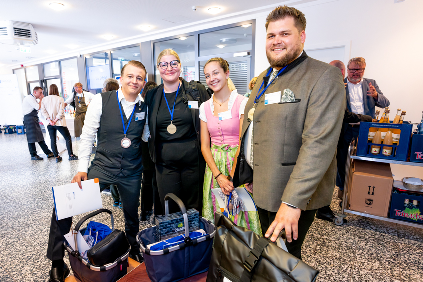 Die beiden deutschen Jugendmeister von 2024, Restaurantfachmann Johannes Lauth und Hotelfachmann Linus Doufrain, waren bei den diesjährigen Jugendmeisterschaften wieder dabei – dieses Mal, um an der Seite der Jury mitzuwirken. Beide hatten sich dafür extra Urlaub genommen. „Für mich ist es nicht weniger spannend als im vergangenen Jahr“, sagte Lauth, der noch immer in seinem Ausbildungsbetrieb, dem Hotel Bareiss in Baiersbronn, tätig ist. Doufrain, inzwischen in einem Hotel in St. Moritz in der Schweiz angestellt, war vor dem Wettbewerb von einigen Teilnehmenden nach Tipps gefragt worden. „Ich habe ihnen gesagt, dass sie jederzeit auf ihr Auftreten achten sollen“, lautete sein wichtigster Ratschlag.